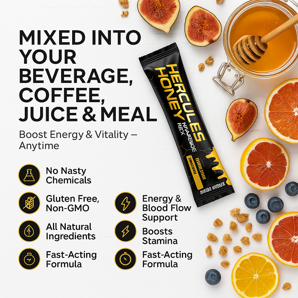 Every Hercules Honey Pack is made with clinical-grade ingredients like L-Citrulline, Tongkat Ali, Horny Goat Weed, and Shilajit — all independently tested by 3rd-party labs for purity, potency, and safety.