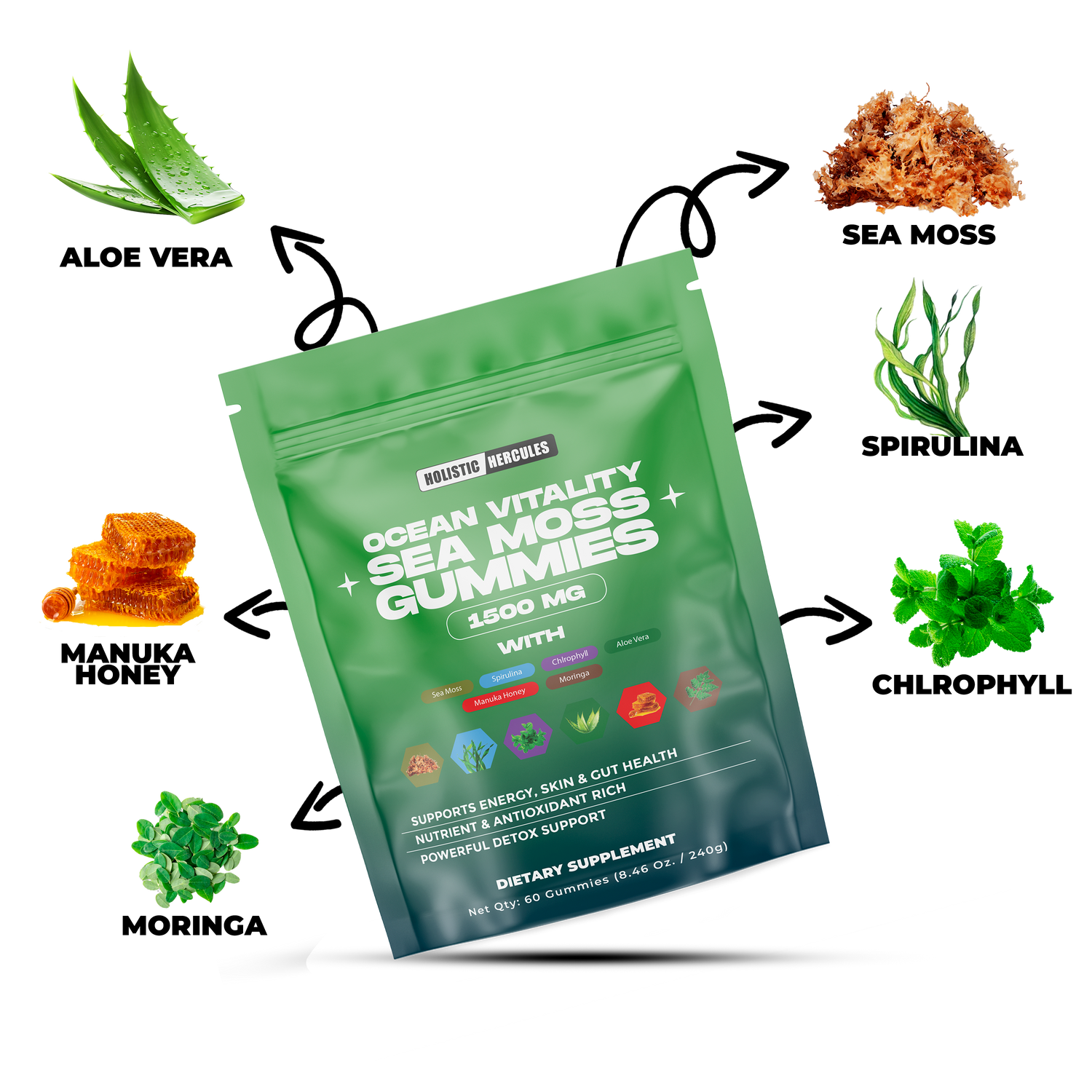 - Sea Moss – Harvested from the pristine waters off the coast of Ireland, known for its rich mineral content and purity.